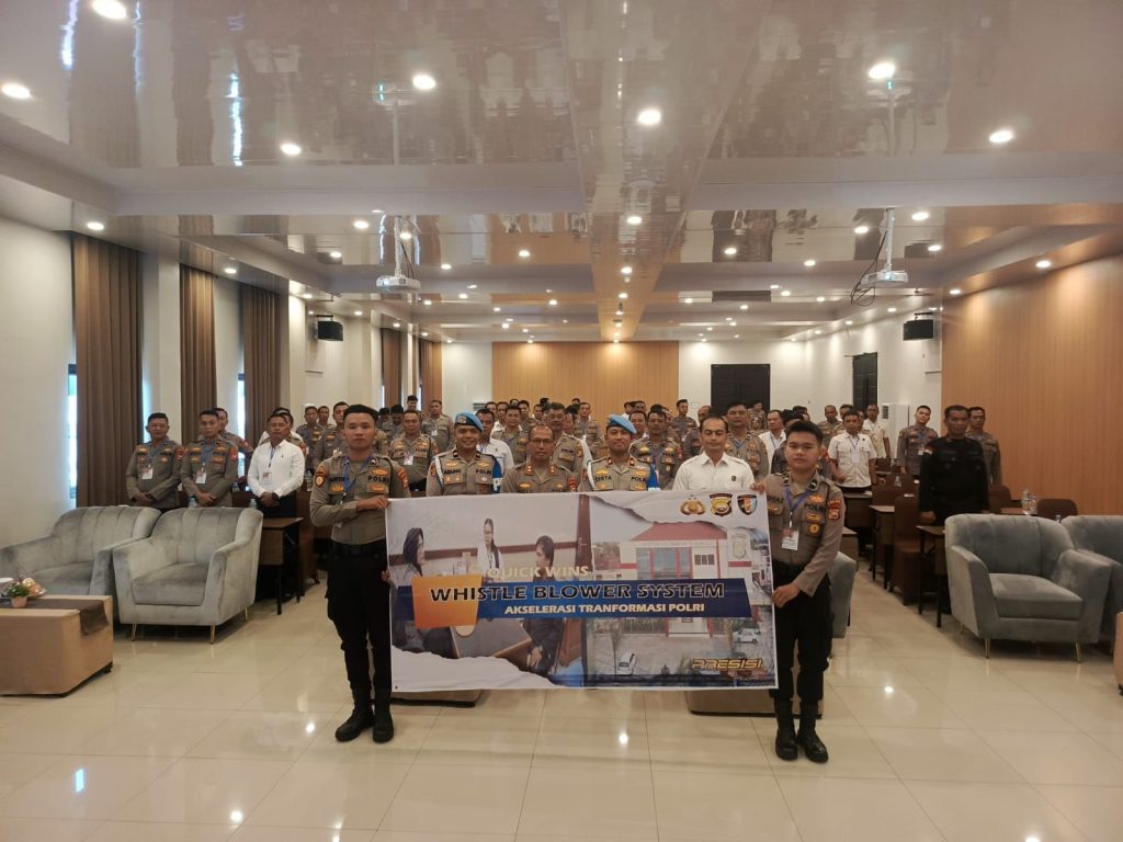 Bengkulu – Bidpropam Polda Bengkulu melaksanakan kegiatan sosialisasi Whistle Blower System dan SP4N LAPOR di Aula Hotel Willo Kota Bengkulu Kegiatan ini dipimpin oleh Kompol Dista Nali Putra, S.I.K. Plh. Kasubbidprovos Bidpropam di dampingin Ipda Agung Samudra, S.H. Panit Hartib Subbidprovos Bidpropam dan bersama 3 personel bidpropam polda bengkulu. Kamis (30/10/2025)
